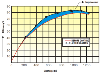 In old, used pumps, our coating and refurbishment services can improve efficiency by more than 4%, depending on the pump's condition and specific speed. In some cases KCPL has achieved more than 15% efficiency improvements.
