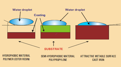 The cured coating is hydrophobic (water-repelling) by nature. This property "nullifies the Intramolecular force of attraction between Fluid & base substrate".