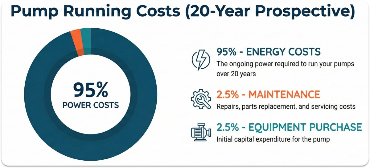 For a pump with a lifetime expectancy of 20 years (for example), only 2.5-3% of the cost of pump operation relates to the purchase price of equipment. A further 2-2.5% is attributable to maintenance costs. The remaining 95% is consumed in the cost of the power to run the unit. With the ever increasing cost of energy over the life of a pump running continuously, the potential savings from the average 4-5% improvement offered by the Fluiglide system offers a fast payback on the initial coating costs.